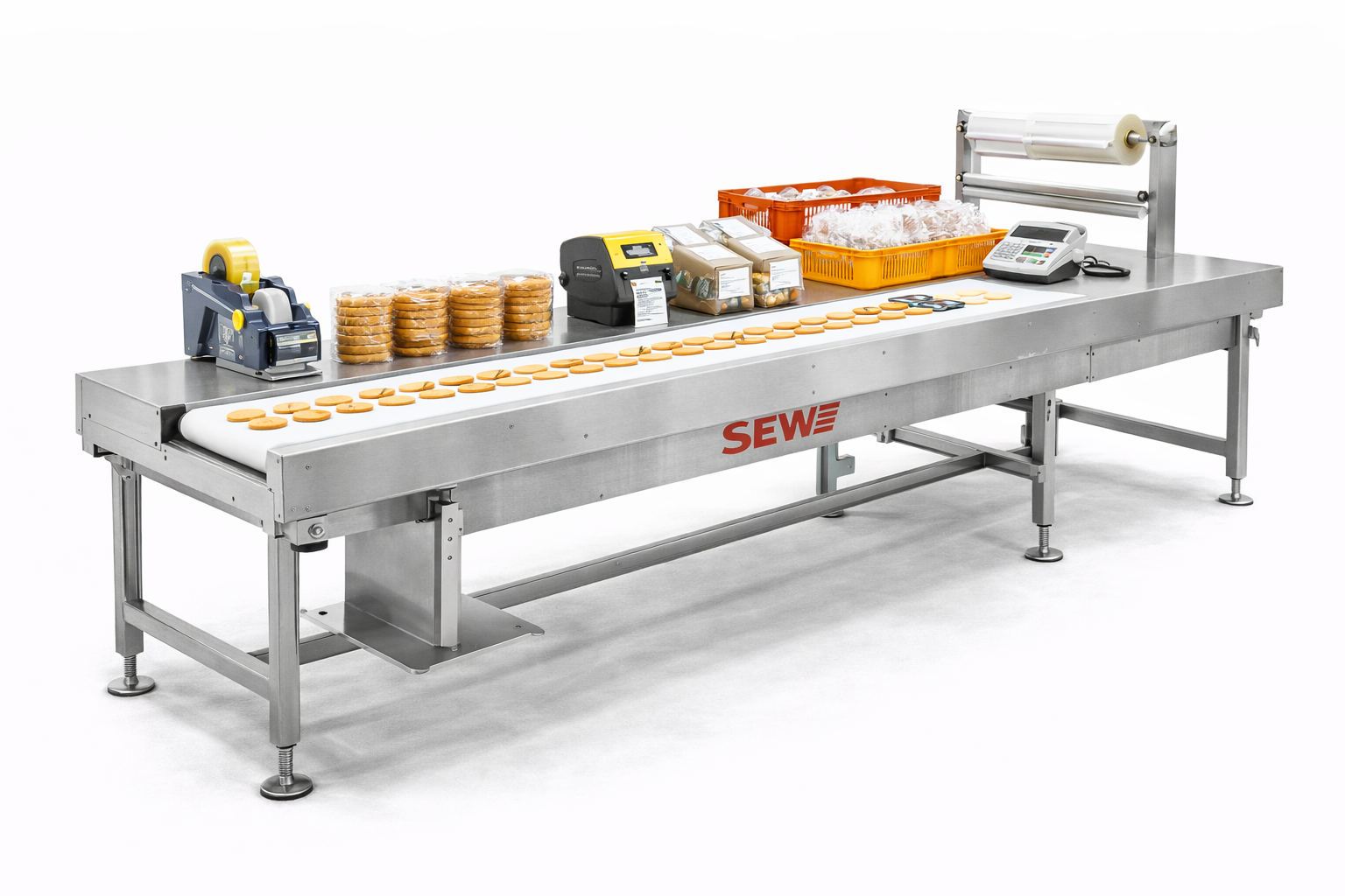 Suitable for manual packing, inspection, sorting, and final handling of biscuits, cookies, cakes, bread, and other bakery products in commercial and industrial units.